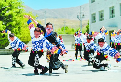 在“天上阿里”日土縣日土村,當地發展鄉村民俗旅游促脫貧,村民吃上了“旅游飯”,還挖掘出省級非物質文化遺產“諧巴諧瑪”舞。村里建起一支專業表演“諧巴諧瑪”舞的隊伍,讓這項古老的民俗文化重放光彩……