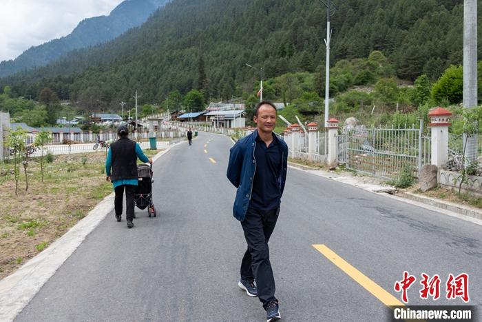 圖為5月12日,西藏林芝上察隅鎮(zhèn)布宗村村民達瓦次仁路過國道219線,該路段的修筑暢通為布宗村經濟帶來了積極改變。中新社記者 江飛波 攝