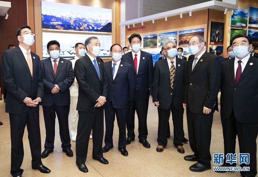 8月18日,以中共中央政治局常委、全國政協(xié)主席汪洋為團長的中央代表團飛抵拉薩,出席西藏和平解放70周年慶祝活動。這是汪洋率代表團全體成員來到西藏博物館,出席《黨的光輝照邊疆 錦繡高原譜華章——西藏和平解放70周年成就展》開幕式并參觀展覽。新華社記者 黃敬文 攝