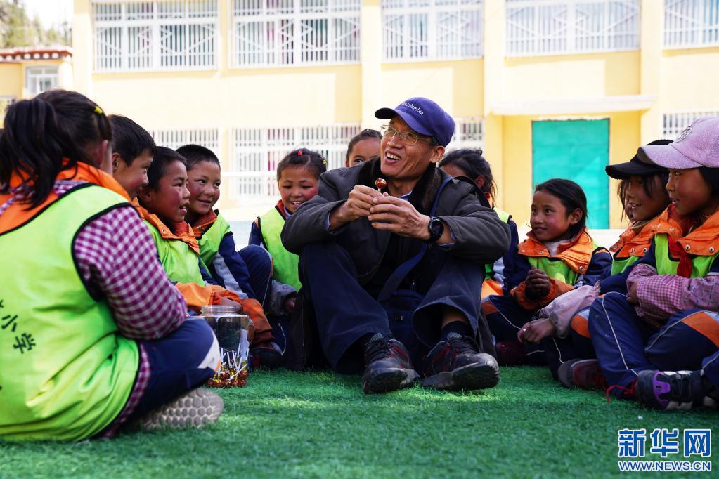5月1日,在西藏昌都市類烏齊縣伊日鄉(xiāng)小學,李純民(中)和學生們交流。新華社記者 黃臻 攝