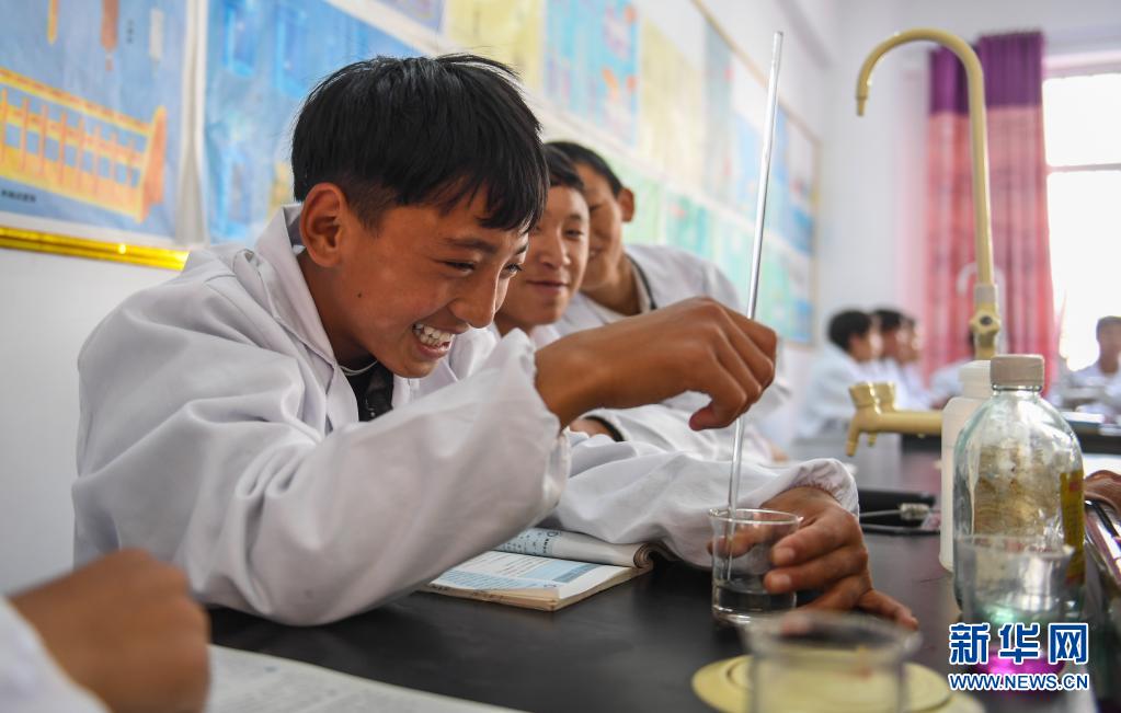 西藏昌都市芒康縣鹽井中學(xué)學(xué)生在上化學(xué)課(2019年6月6日攝)。新華社記者 晉美多吉 攝