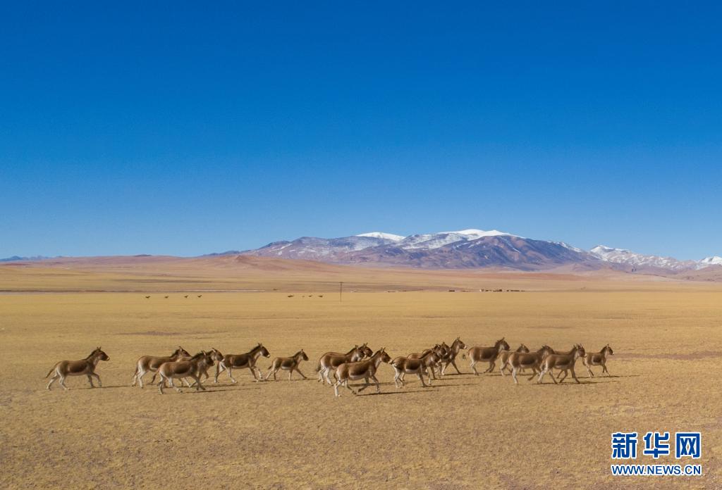 這是在西藏羌塘國(guó)家級(jí)自然保護(hù)區(qū)拍攝的藏野驢(無人機(jī)照片,2019年12月23日攝)。新華社記者 孫非 攝