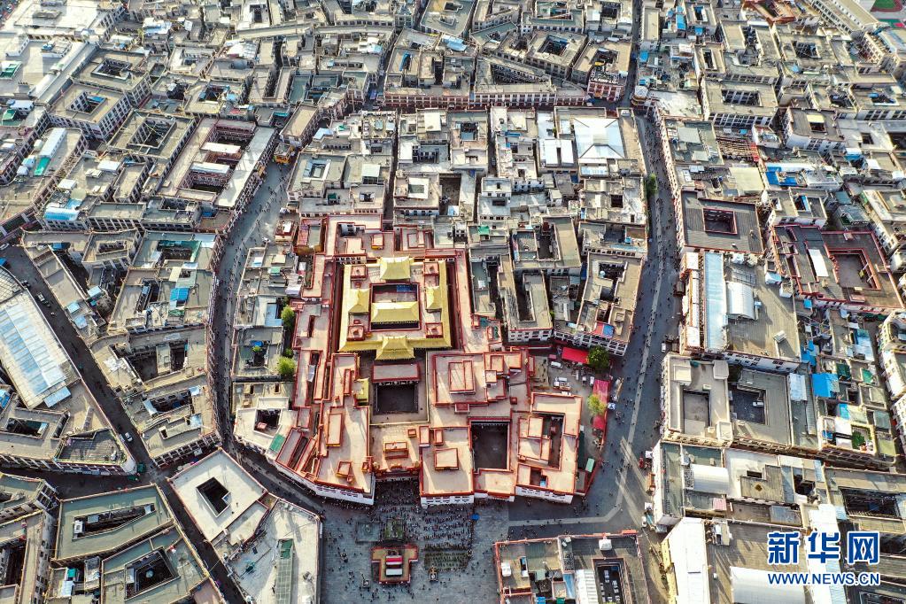 鳥瞰拉薩八廓街(無人機(jī)照片,2019年8月10日攝)。新華社記者 普布扎西 攝