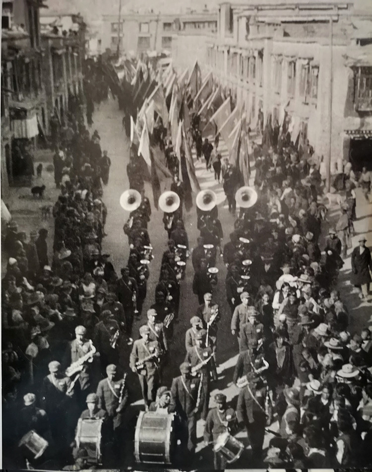 圖為藏族僧俗群眾歡迎解放軍。 翻拍:孔夏