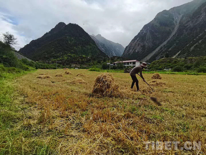 高原的仲秋是最舒服的季節(jié)。在林芝市察隅縣古拉鄉(xiāng)俄玉村的田地上,村民們正忙碌著,秋收的喜悅滲透在每一次彎腰整理麥稈、每一次捆起沉甸甸的麥穗、每一次扛起裝滿(mǎn)麥粒的袋子中。