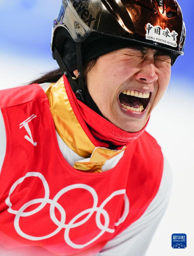 2月14日,中國選手徐夢桃在比賽中慶祝。新華社記者 許暢 攝