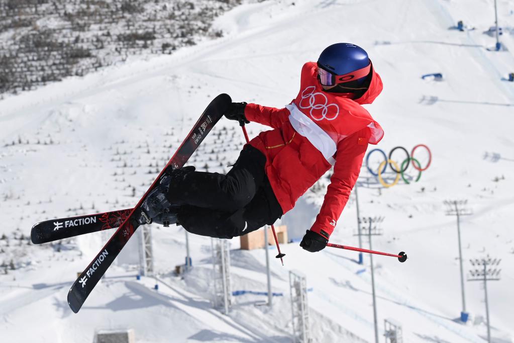 2月16日,中國隊選手齊廣璞在自由式滑雪男子空中技巧決賽中。新華社記者朱崢攝