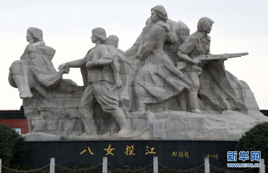 位于黑龍江省牡丹江市江濱公園的“八女投江”群雕(2018年10月26日攝)。新華社記者 王建威 攝