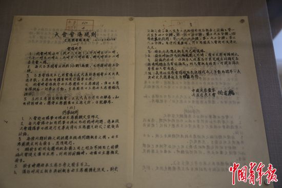 展廳第二部分“中共六大的籌備與召開”中展出的大會會場規則文件。中青報·中青網駐俄羅斯記者 張健/攝