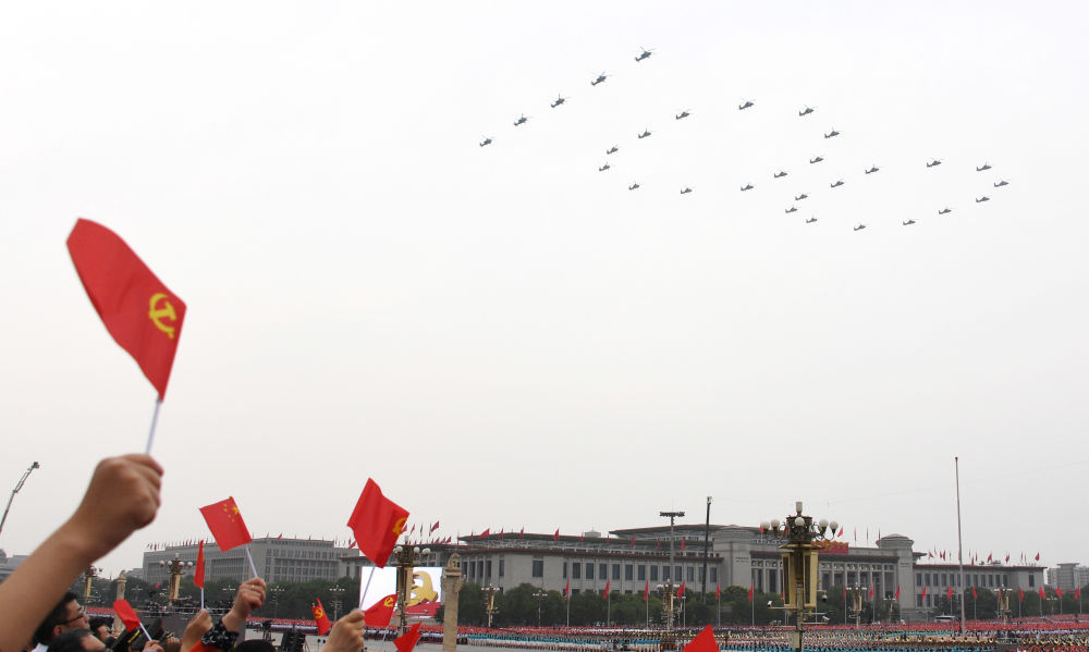7月1日上午,慶祝中國共產黨成立100周年大會在北京天安門廣場隆重舉行。這是飛行慶祝表演。新華社記者 李欣 攝