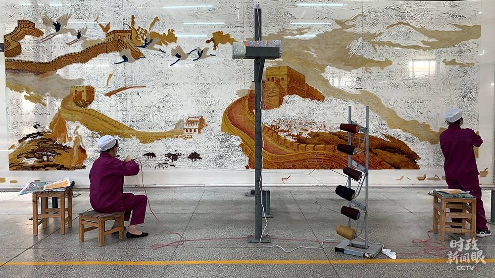這幅手工槍刺藏毯以長城為原型,面積接近14平方米。兩人同時操作需兩個月時間完成。(總臺央視記者王鵬飛、楊松濤拍攝)