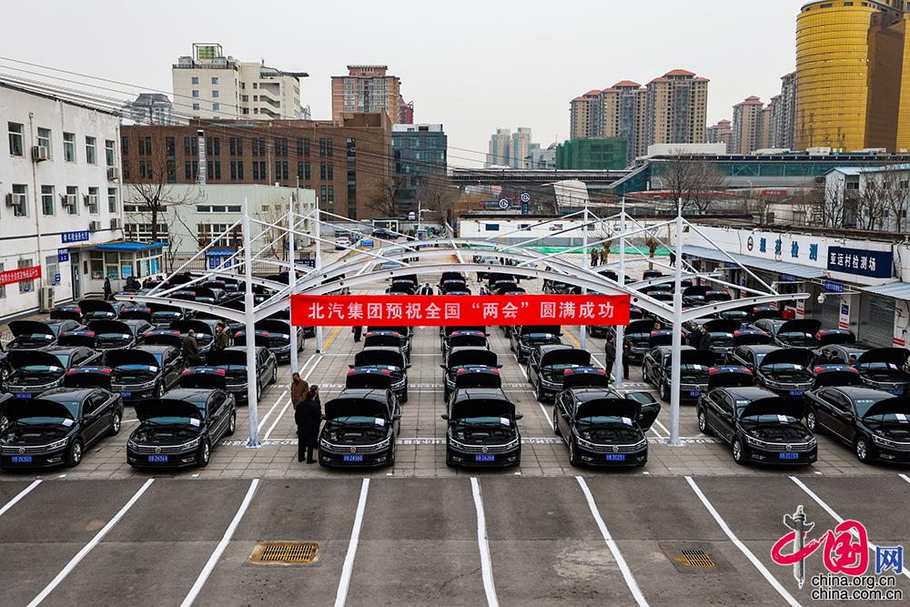 2021年全國“兩會”期間,北汽出租汽車集團共計上會車輛469部,其中新進購置宇通T7及新金龍、新宇通大客車、吉利汽車等大小車輛90部。中國網記者 鄭亮攝
