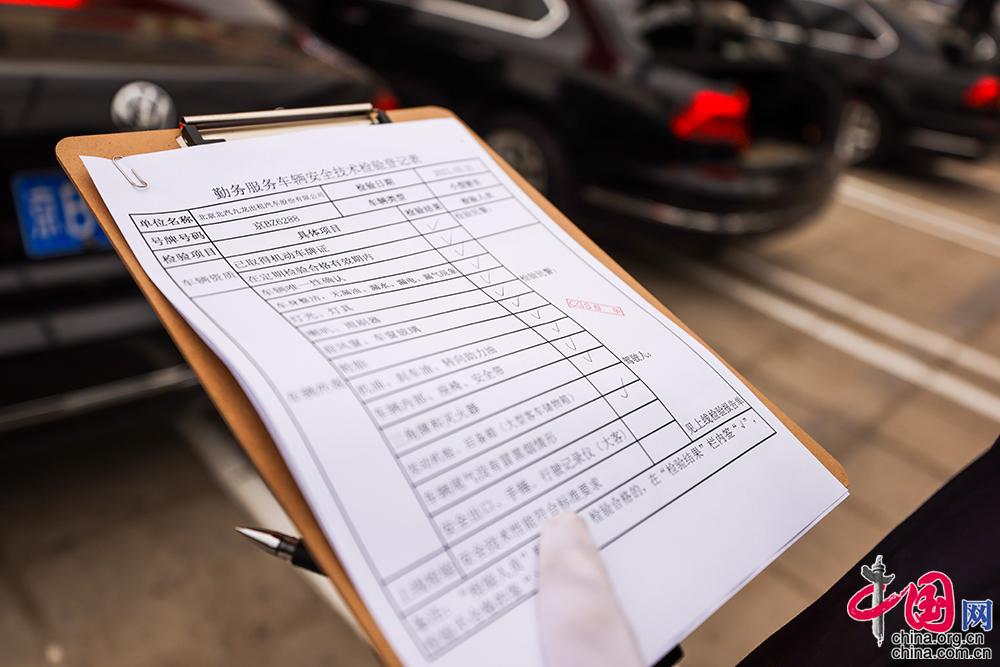 專業檢查人員逐一對車輛進行檢查,大燈、雨刷、遠光燈、剎車每項都要細心檢測并做記錄。中國網記者 鄭亮攝