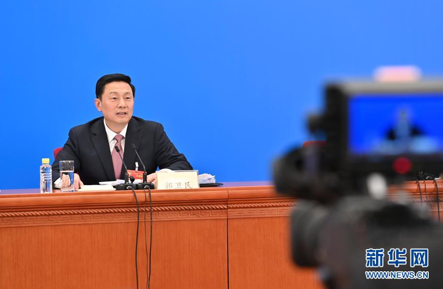 這是郭衛民在主會場回答記者提問。新華社記者 李鑫 攝