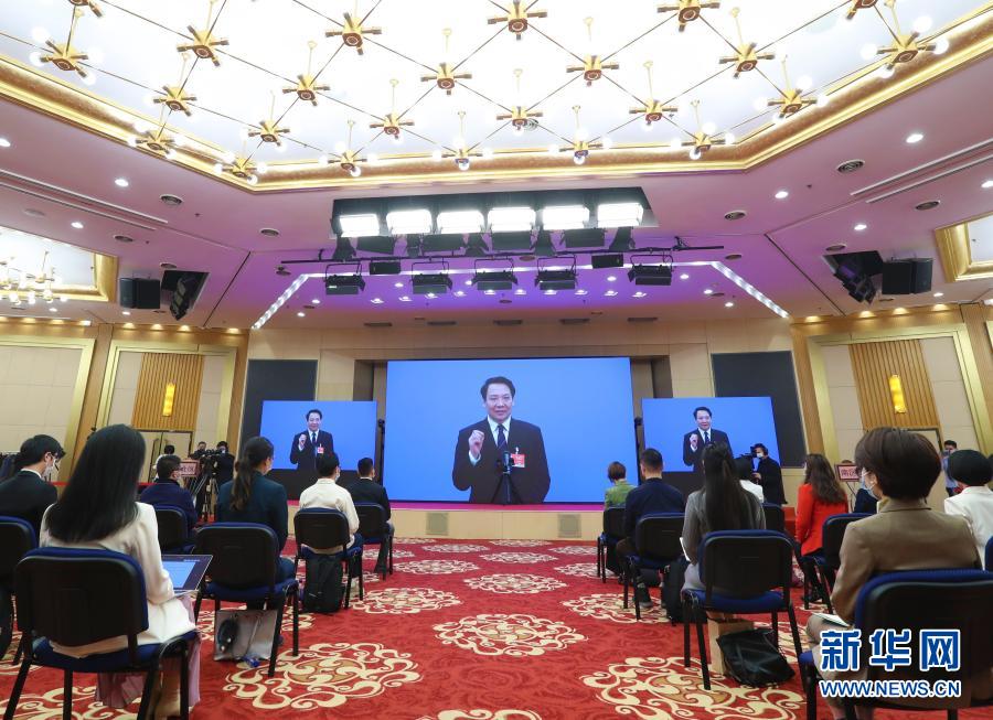 3月10日,全國政協十三屆四次會議第三場“委員通道”采訪活動在北京人民大會堂新聞發布廳舉行。這是全國政協委員胡國珍通過網絡視頻方式接受媒體采訪。新華社記者 李賀 攝