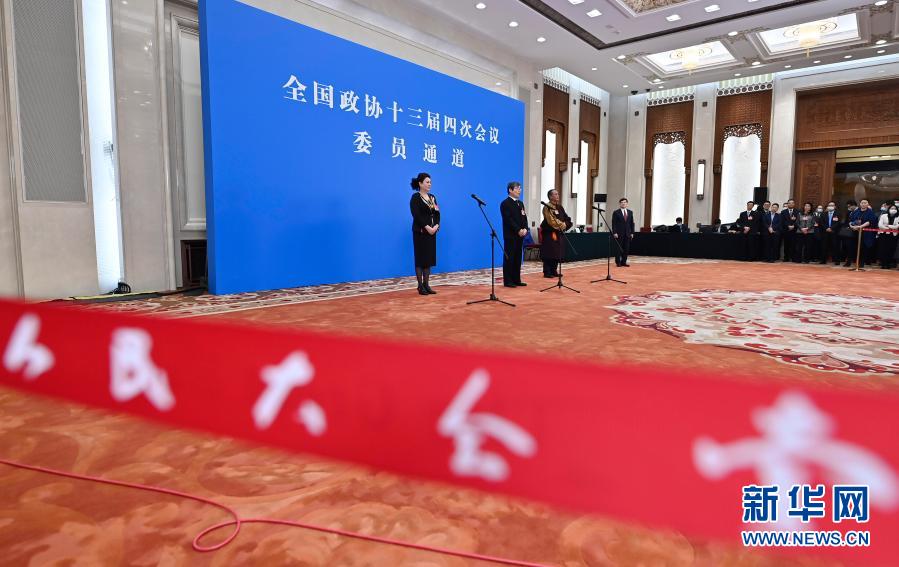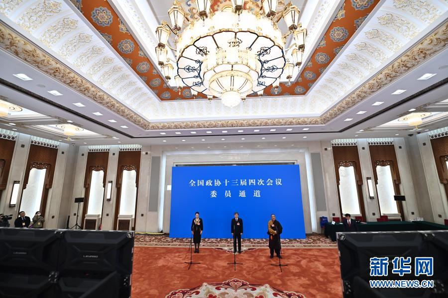 3月10日,全國政協十三屆四次會議第三場“委員通道”采訪活動在北京人民大會堂新聞發布廳舉行。新華社記者 賀長山 攝