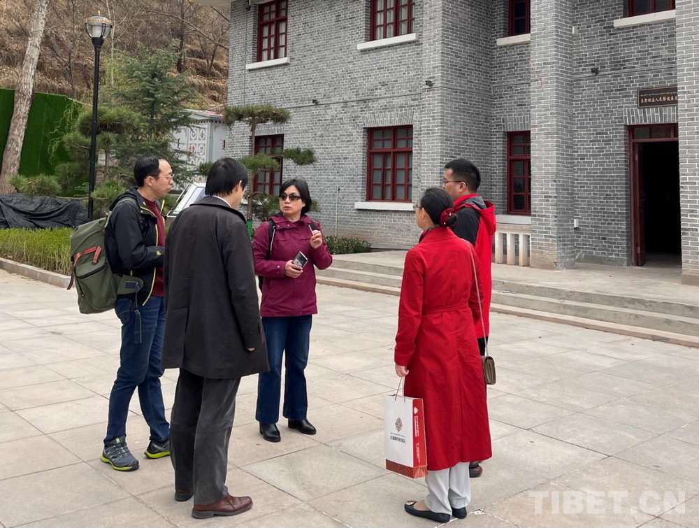 圖為采訪組與前來參觀的黨員和民主黨派人士講述發(fā)生在昌都解放委員會小禮堂的紅色故事