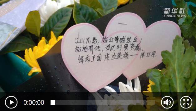 這是在甘肅省蘭州市烈士陵園拍攝的網友給陳紅軍烈士敬獻的花束留言(2月23日攝)。新華社記者 范培珅 攝