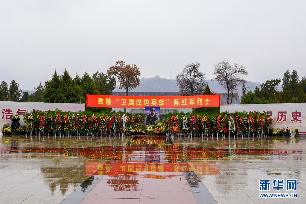 這是在甘肅省蘭州市烈士陵園拍攝的社會各界人士給陳紅軍烈士敬獻的花束、花籃(2月23日攝)。新華社記者 范培珅 攝