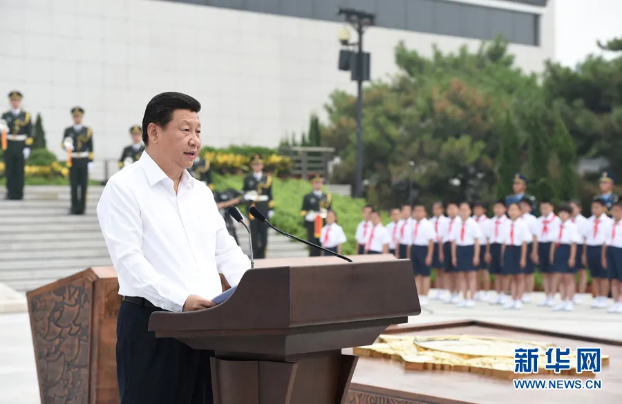 2014年7月7日,首都各界在中國人民抗日戰爭紀念館隆重集會,紀念全民族抗戰爆發77周年。中共中央總書記、國家主席、中央軍委主席習近平出席紀念儀式并發表重要講話。新華社記者 馬占成 攝