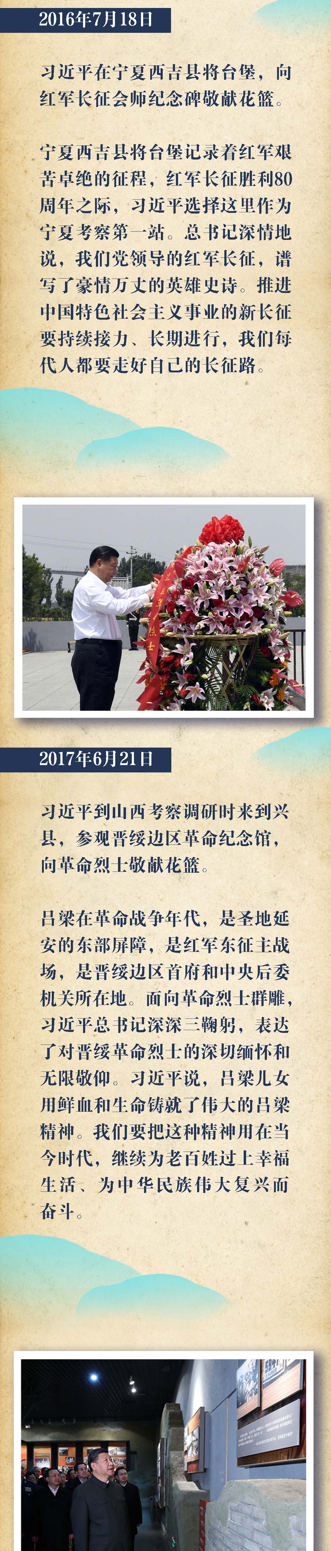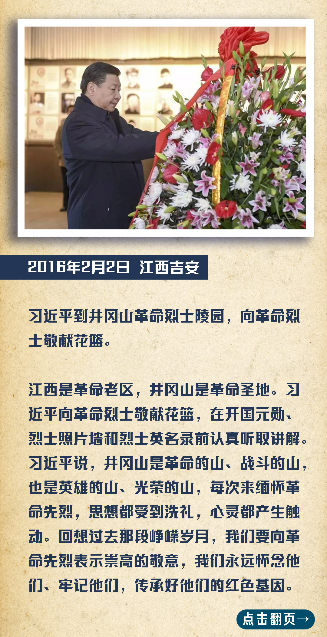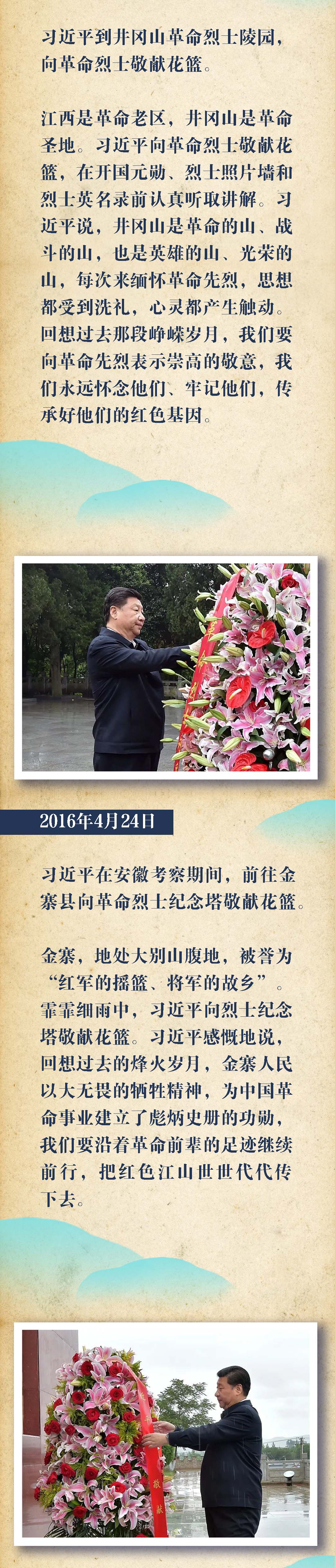 黨的十八大以來,習近平總書記踏尋英雄、緬懷英烈的足跡遍布大江南北。在赴地方考察調研期間,他多次前往當地烈士陵園敬獻花籃,緬懷英雄先烈,謳歌民族英雄,用自己的言行為全黨全軍全國各族人民作出表率。[詳細]