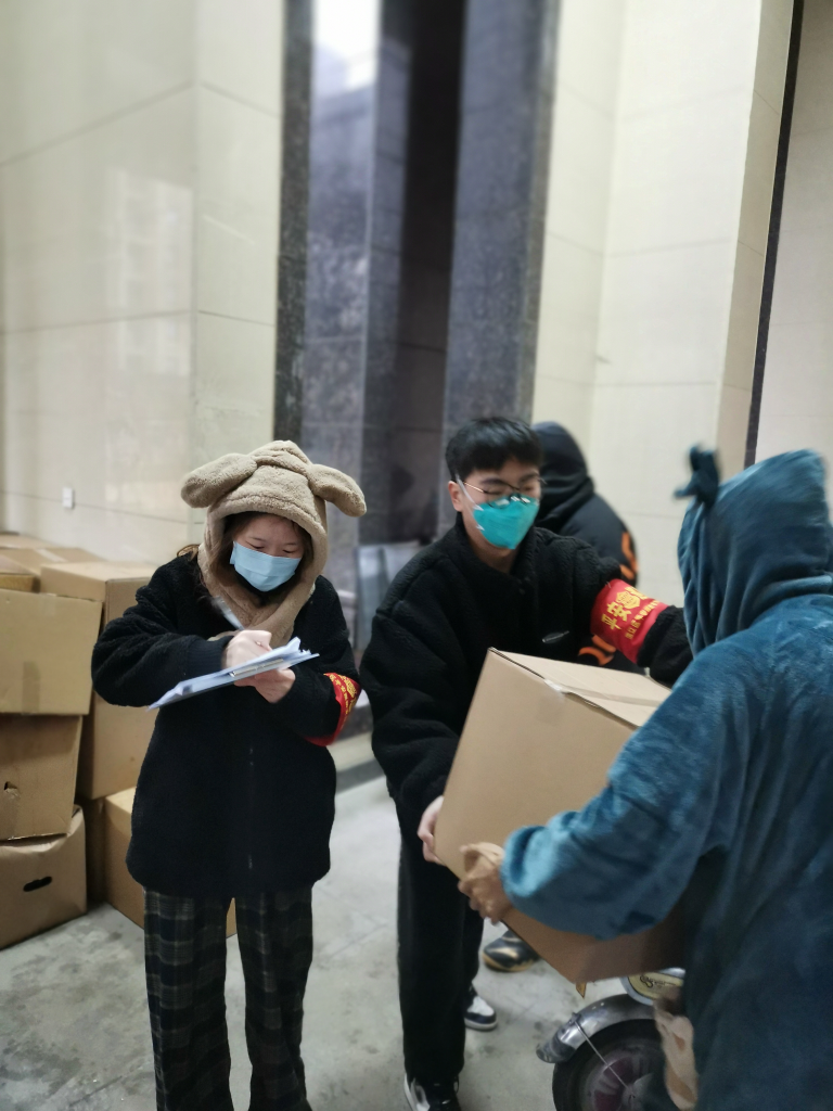 傳遞溫暖,凝聚起更強大的力量。今年19歲的傅杭婷是大一新生,她主動報名志愿者崗位。“隔離疫情風險,但隔離不了溫暖。這幾天杭州時常有雨雪,居民會給我們送暖寶寶;手提物資太累,居民又把推車和三輪車送了過來。”她說。