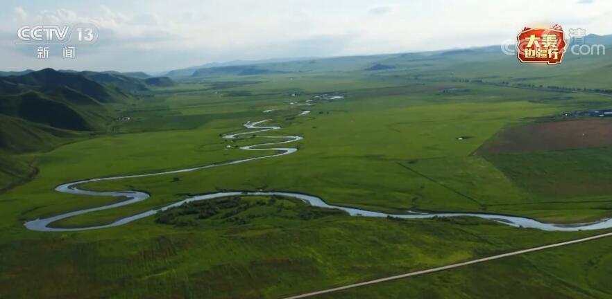 內蒙古臺記者 張娟:現在我們來到了興安盟烏蘭毛都草原,它也叫杭蓋草原,意思是森林里的草原,大家看遠處連綿不斷的山脈,還有九曲河。
