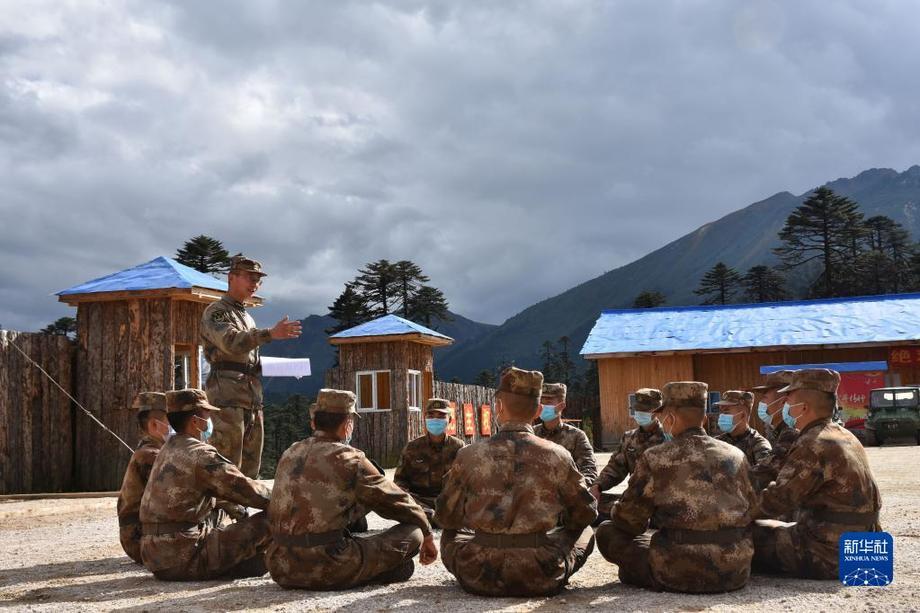 10月17日,西藏林芝軍分區“墨脫戍邊模范營”組織官兵學習黨的二十大報告。新華社發(游毅 攝)