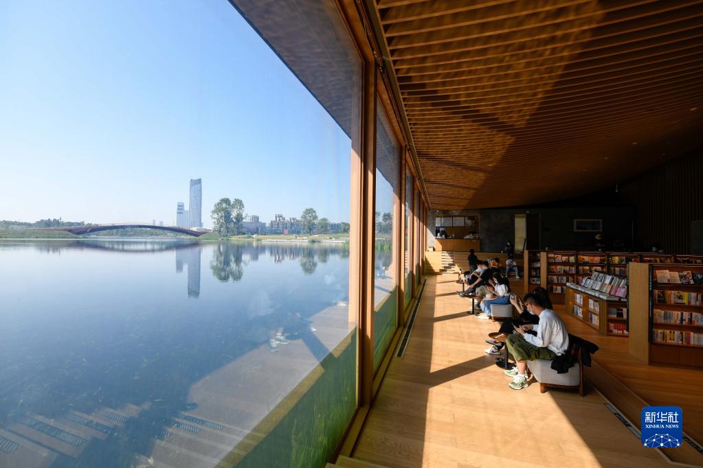 讀者在成都興隆湖畔的中信書店內讀書(2022年4月20日攝)。新華社記者 胥冰潔 攝