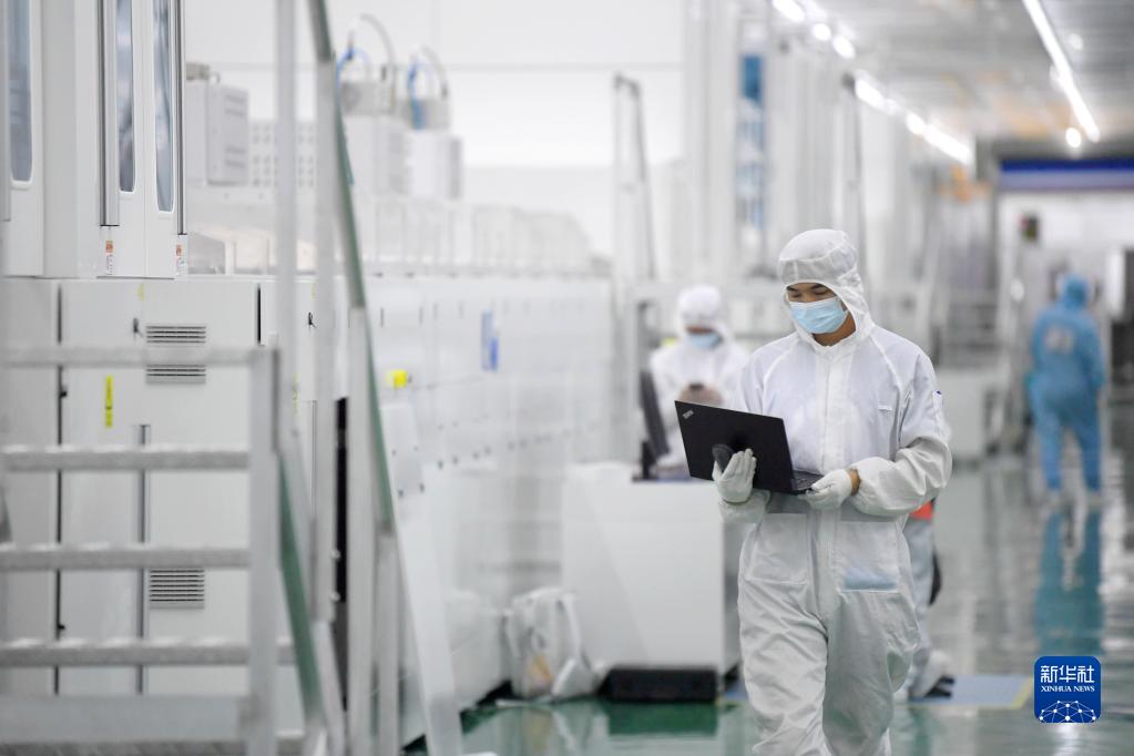 科研人員在秦創原光伏創新中心——隆基中央研究院中試線上工作(2022年9月23日攝)。新華社記者 李一博 攝