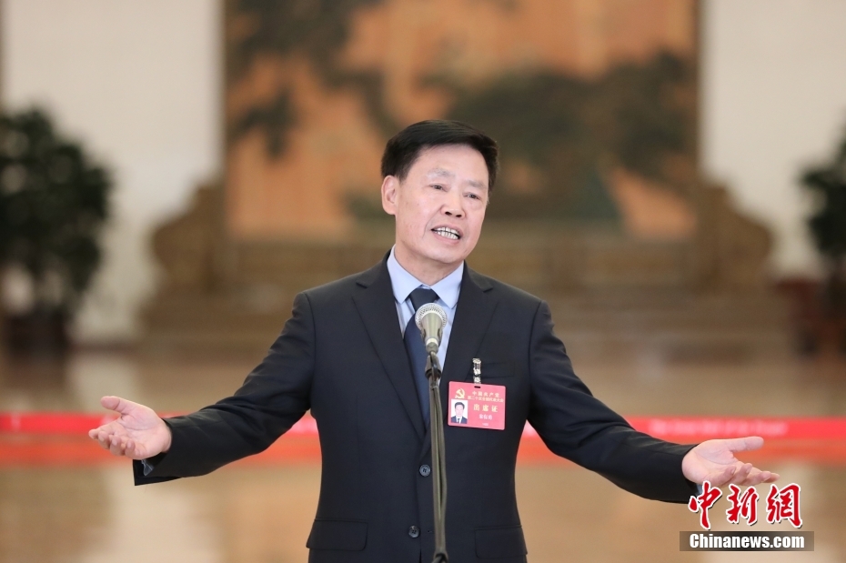 10月16日,中國共產黨第二十次全國代表大會在北京人民大會堂開幕。大會開幕前,舉行“黨代表通道”采訪活動。圖為謝春濤代表接受采訪。 中新社記者 蔣啟明 攝