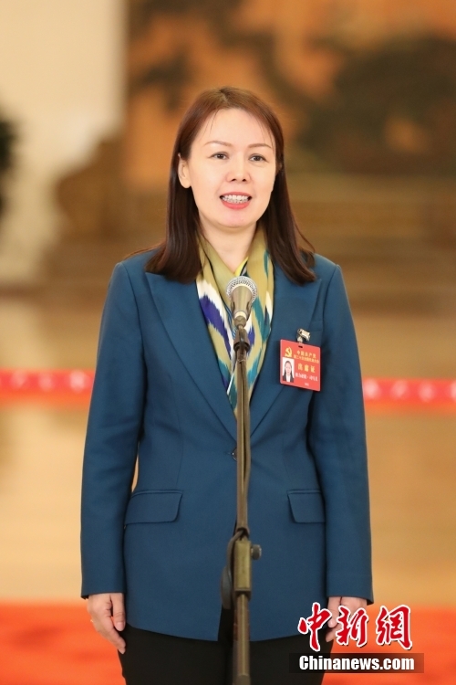 10月16日,中國共產黨第二十次全國代表大會在北京人民大會堂開幕。大會開幕前,舉行“黨代表通道”采訪活動。圖為祖力亞提·司馬義代表接受采訪。 中新社記者 蔣啟明 攝