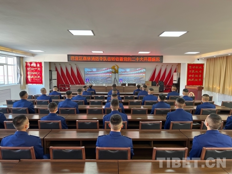 圖為林芝市森林消防支隊(duì)組織收聽(tīng)收看黨的二十大開(kāi)幕會(huì) 圖片由林芝市委宣傳部提供