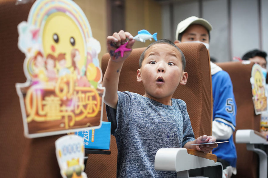 6月1日,在南京醫科大學第二附屬醫院,小患者在欣賞玩具。新華每日電訊記者季春鵬攝