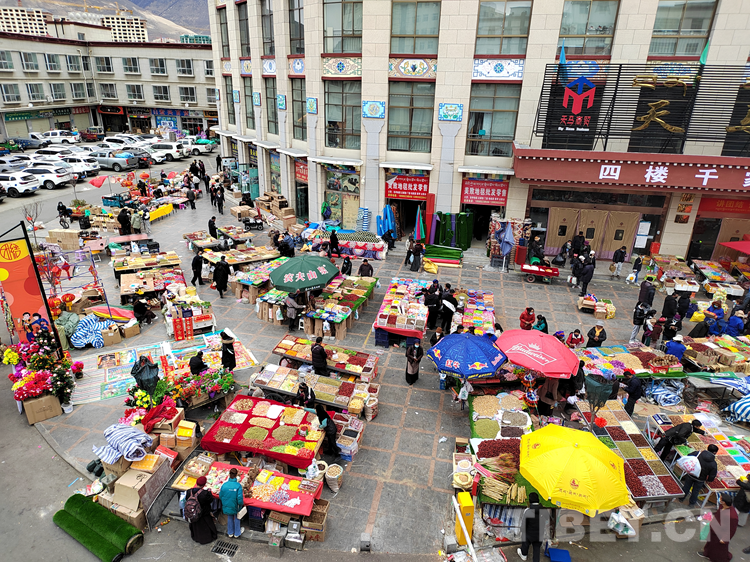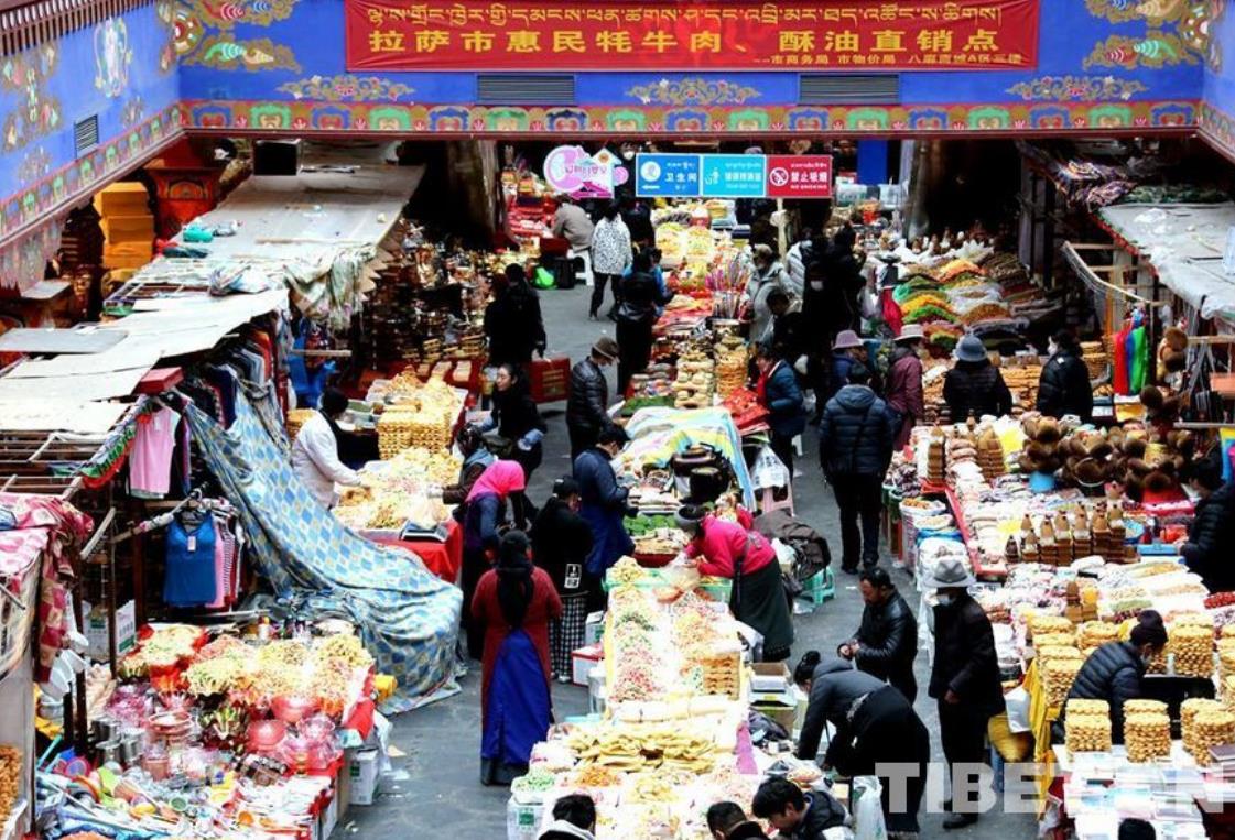 這處位于西藏自治區(qū)拉薩市城關區(qū)的商城,是當?shù)刈顭狒[的年貨市場之一,商場往西走不遠便是布達拉宮。