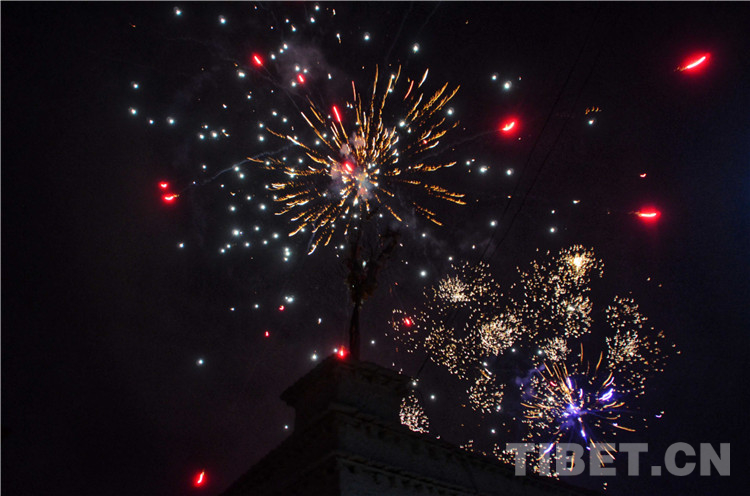 晚上八點左右,滿天煙花綻放,熱烈的氛圍中查斯一家與鄰居圍坐在自家門口,互敬青稞酒、酥油茶,凝聚成了這一年中最美的夜。
