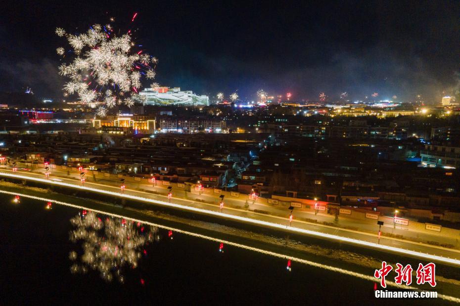 煙花璀璨 西藏拉薩迎藏歷新年古突夜