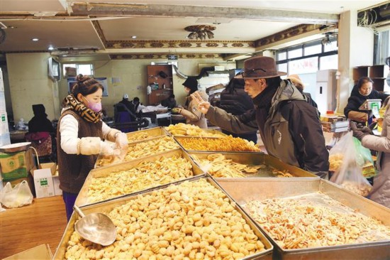 隨著藏歷新年日益臨近,拉薩街頭巷尾出現各種玲瑯滿目的藏式年貨,讓年味兒越來越濃,而構成這年味兒最重要的元素之一就是“卡塞”的香甜味兒。 “卡塞”是一種用白面、酥油油炸制成的藏式點心,是家家戶戶過年的必備品,更是年貨市場的寵兒。