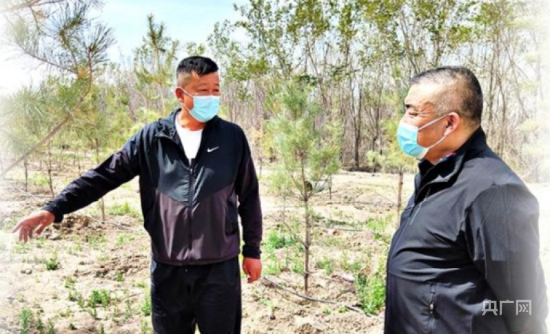 余磊在苗木基地察看苗木長勢情況。(央廣網發 阿依加瑪麗·列提甫 攝)