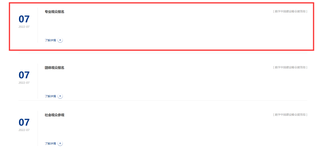 瀏覽器搜索“數字中國建設峰會”進入官網。點擊“觀眾報名”欄目,選擇“專業觀眾報名”。
