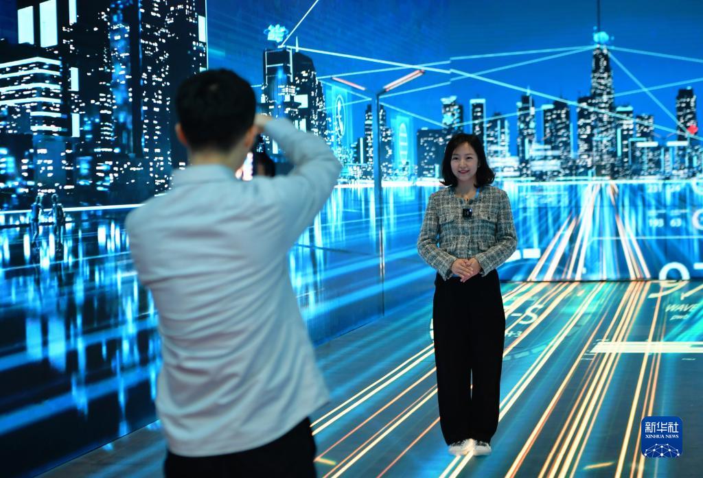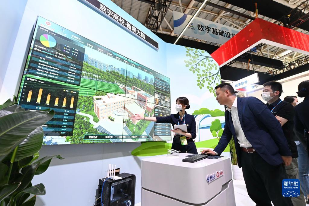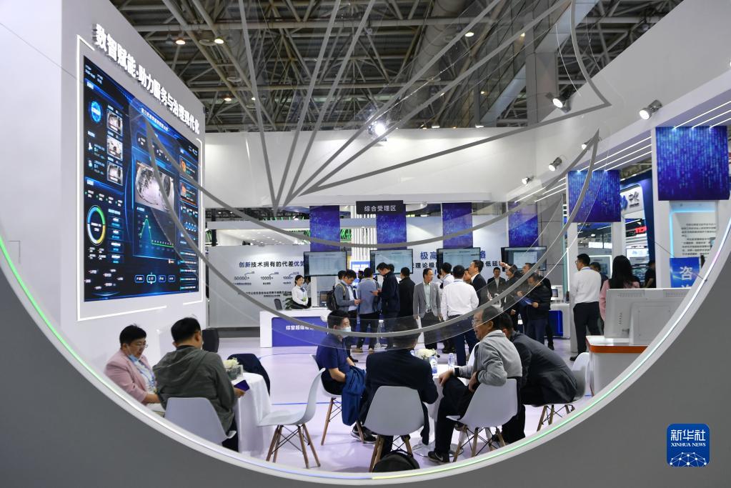 4月26日在第六屆數(shù)字中國(guó)建設(shè)成果展覽會(huì)上拍攝的數(shù)智賦能·助力服務(wù)與治理現(xiàn)代化展區(qū)一景。新華社記者 魏培全 攝