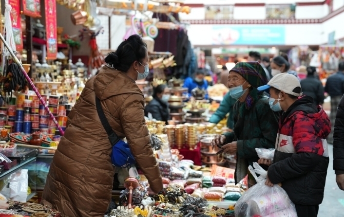 藏歷新年臨近,西藏自治區拉薩市大街小巷喜慶氛圍撲面而來,各大農副產品市場也迎來節前銷售高峰期。