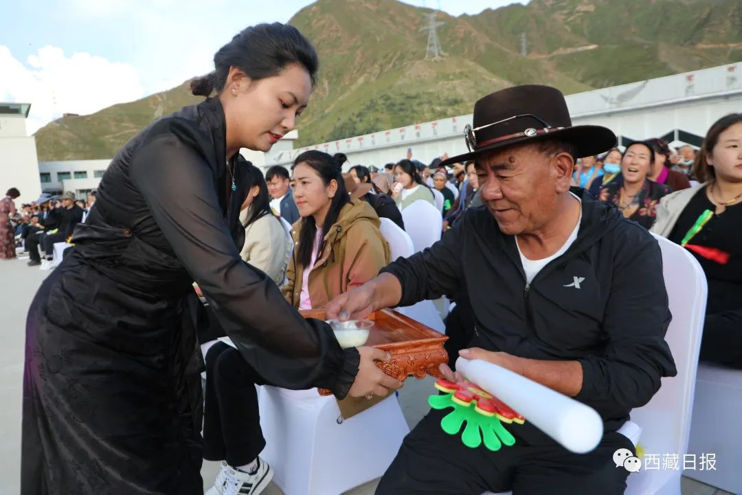 與此同時,2000名受邀師生代表、單位干部職工代表以及社區(村居)群眾在分會場觀看開幕式演出。分會場的開幕式演出在藏裝秀表演中拉開序幕,除了有精彩多樣的演出節目外,分會場還有其樂融融的酸奶宴以及幸福感滿滿的集體鍋莊環節。