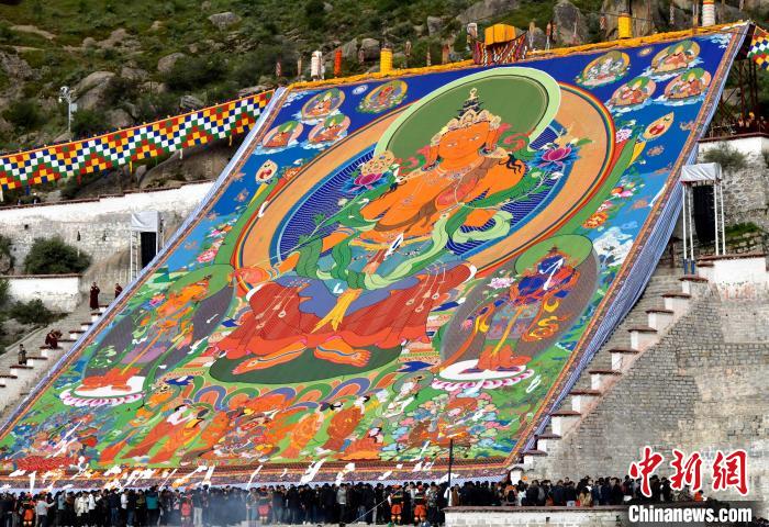 16日清晨,位于西藏拉薩西郊的哲蚌寺舉行隆重的展佛儀式,由此2023年拉薩雪頓節拉開帷幕。