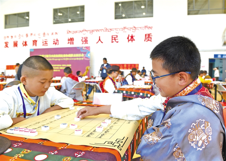 17日上午,在雪頓節藏棋表演賽上,選手們緊張對弈。記者 旦增蘭澤 攝