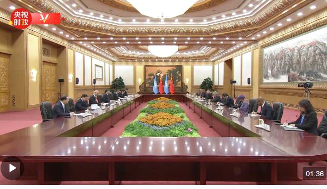 10月18日晚,國家主席習近平在人民大會堂會見來華出席第三屆“一帶一路”國際合作高峰論壇的聯合國秘書長古特雷斯。