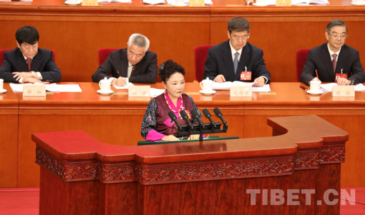 圖為全國政協委員卓嘎在作大會發言 攝影:桑吉