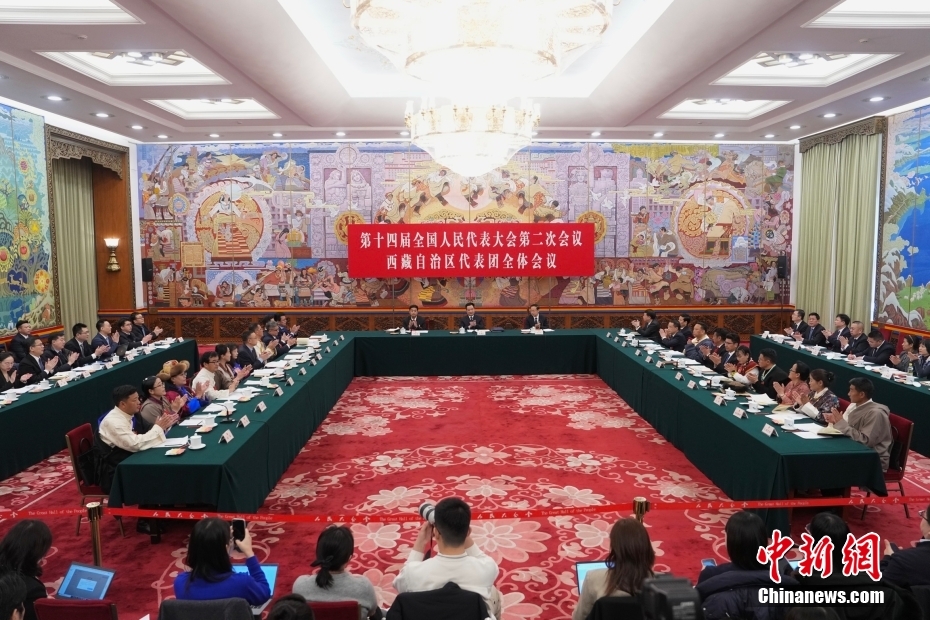 經過表決,會議推選王君正為十四屆全國人大二次會議西藏代表團團長,嚴金海、王永祥為副團長。會議審議了十四屆全國人大二次會議主席團和秘書長名單草案、大會議程草案。