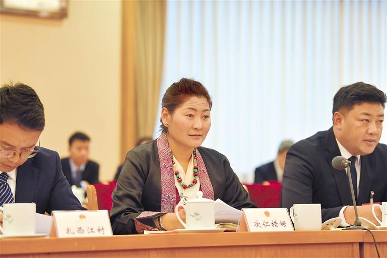 全國人大代表白瑪措在會上發言。記者 旦增西旦 攝