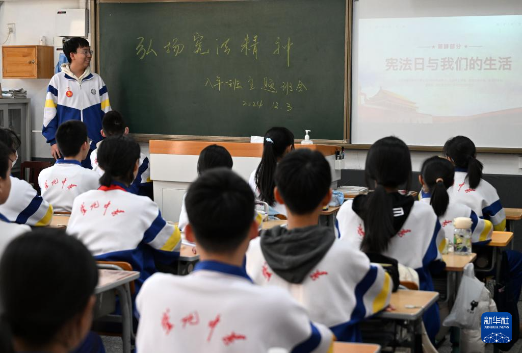12月3日,天津市南開區崇化中學學生在國家憲法日教育宣傳主題班會上進行分享。